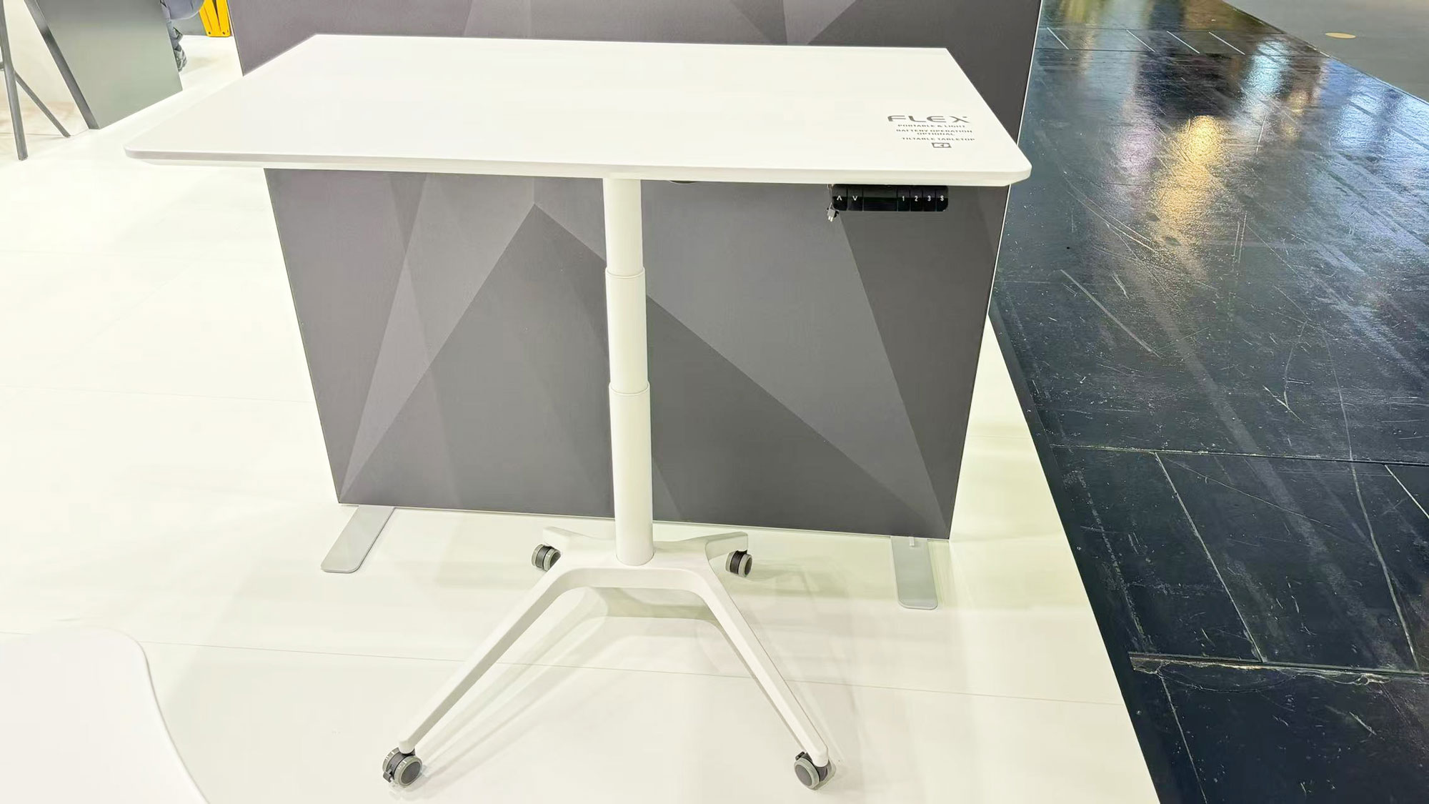 比如,在展會現(xiàn)場我們呈現(xiàn)的單柱可移動升降桌,具有靈活可移動的優(yōu)勢,不僅可以根據(jù)使用者的需求自主調(diào)節(jié)改變桌高實現(xiàn)坐站交替辦公,還能輕松移動至多種應(yīng)用場景來改變工作環(huán)境,適合小組之間的臨時性溝通協(xié)作辦公以及在居家環(huán)境辦公使用。